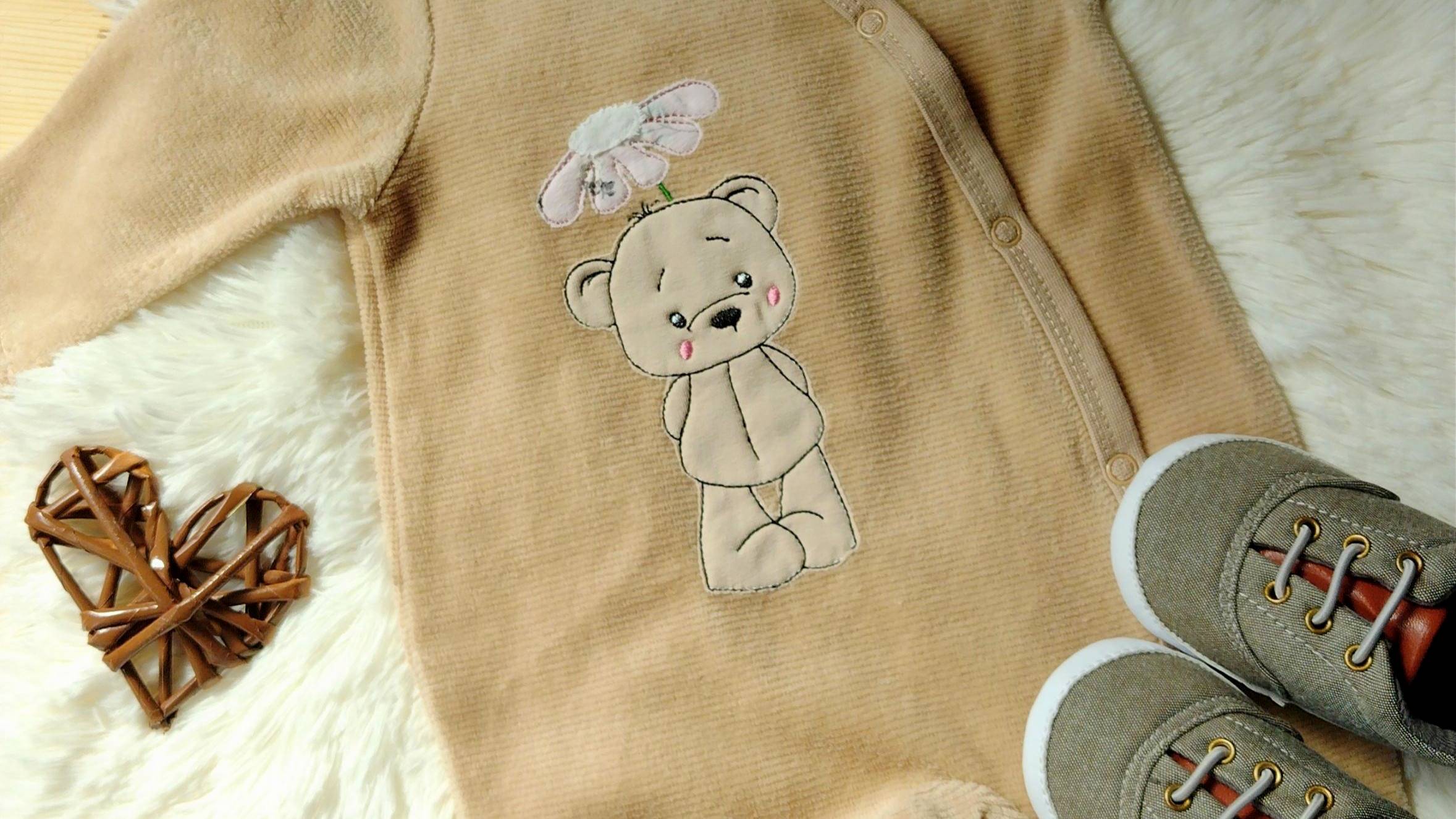 Výšivka Medvedík s kvetinkou - 10x10 13x18 aplikácia