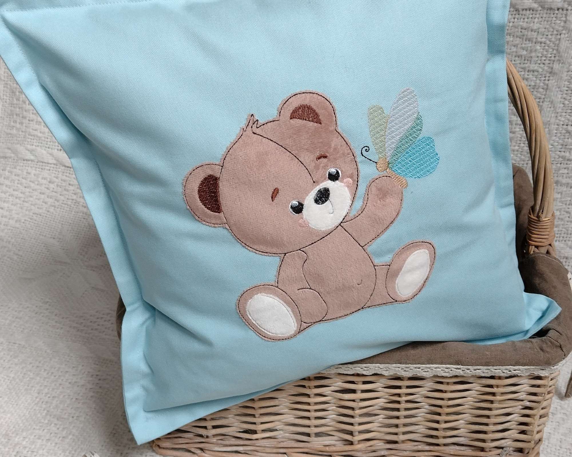 Výšivka Medvedík s motýľom - 10x10 13x18 16x26 18x30 aplikácia