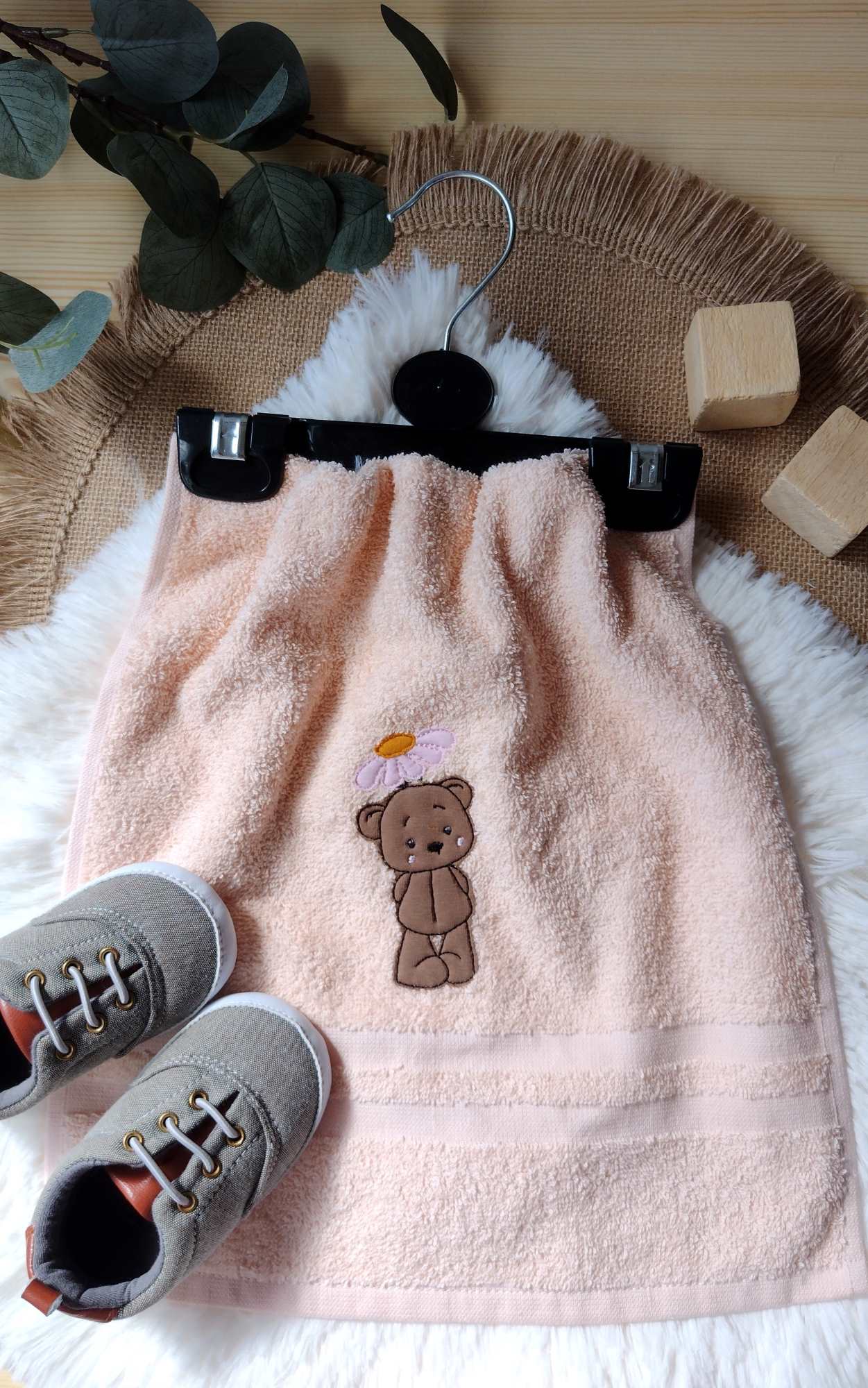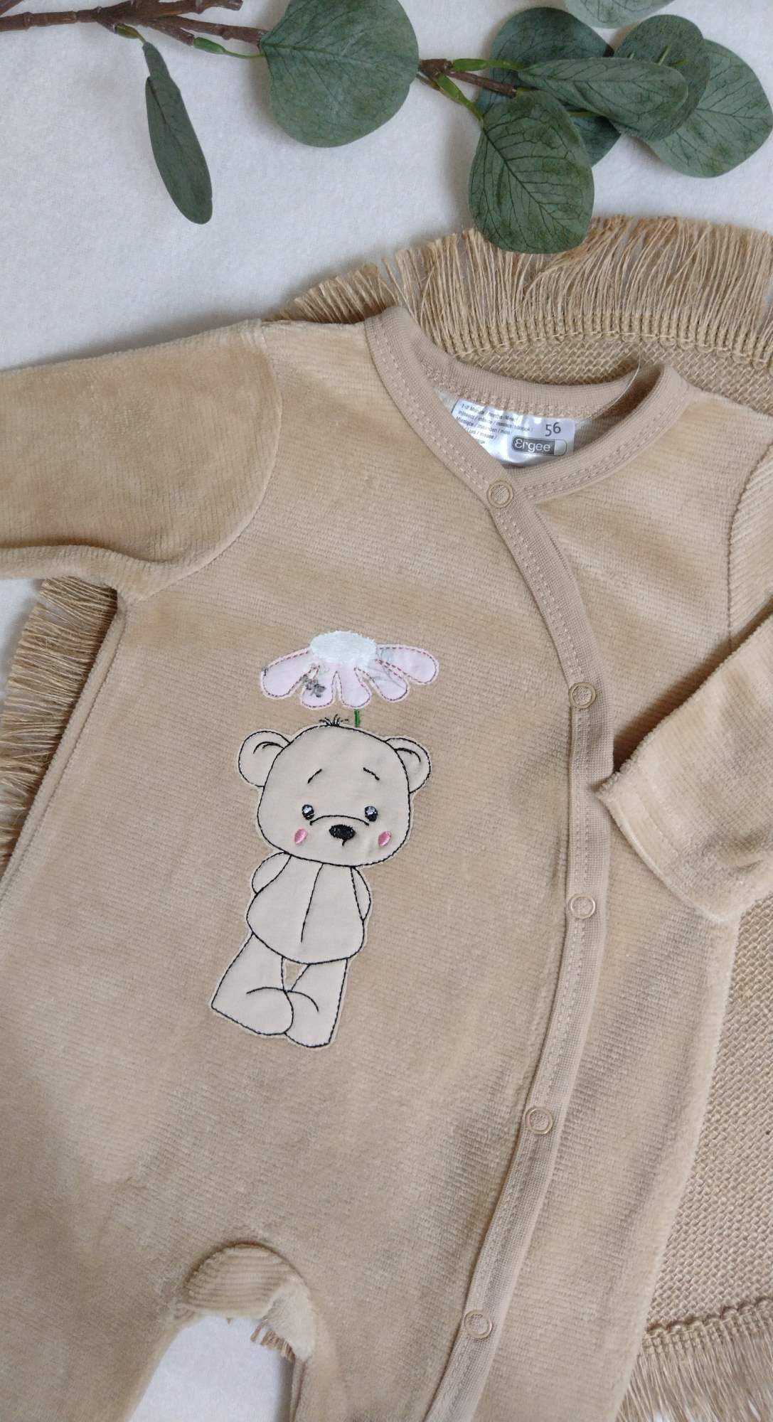 Roztomilá strojová výšivka medvedíka, ktorý drží kvetinku - vo dvoch veľkostiach. Vhodná ako aplikácia na detské oblečenie, vankúše či doplnky do izbičky. Vďaka jednoduchému dizajnu je vhodná aj pre začiatočníkov.